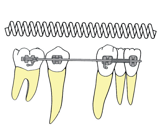 Our open coil compression springs are an excellent choice if you are looking for space creation with minimal patient discomfort. This product will provide near-constant force through-out the mean deflection of the spring without the "setting" conditions that you will normally find in stainless steel springs.